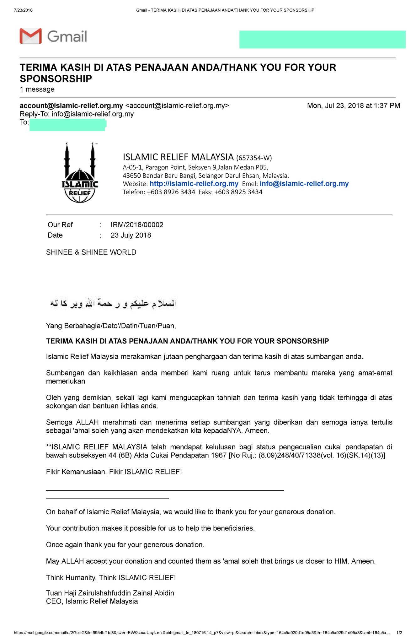 𝔪𝔞𝔰𝔱𝔞𝔷𝔩𝔦𝔥𝔞 On Twitter Please Read And Rt Here I Would Like To Share The Gratitude And Official Receipt We Received For The Shinee10thanniversary Mini Fundraising Project By Irmalaysia On The Name Of