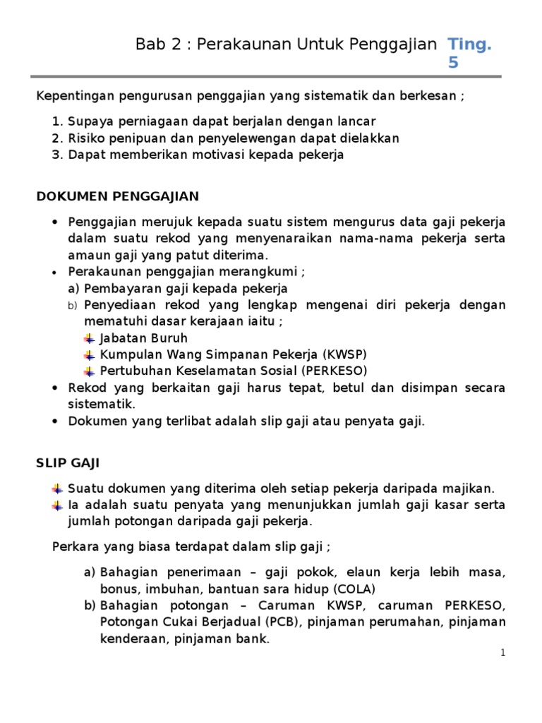 Accounting Principle Form 5 Chapter 2 Accounting For Employment Notes