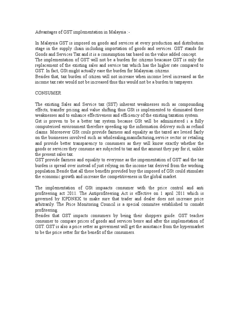 Benefits Of Gst In Malaysia