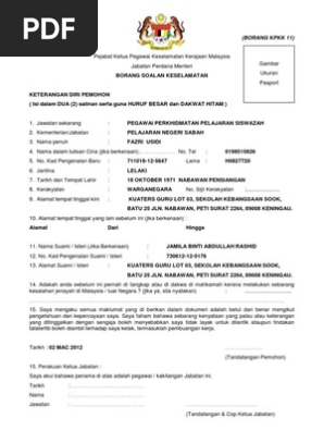 Isi Borang Tapisan Keselamatan Secara Online