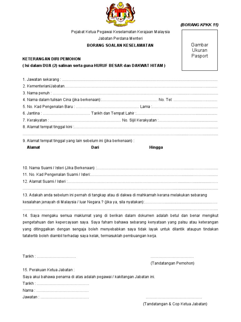 Borang Tapisan Keselamatan Kasar Kpkk 11