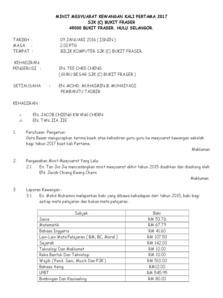 Contoh Minit Mesyuarat Kewangan Sekolah Kali Ketiga 2019