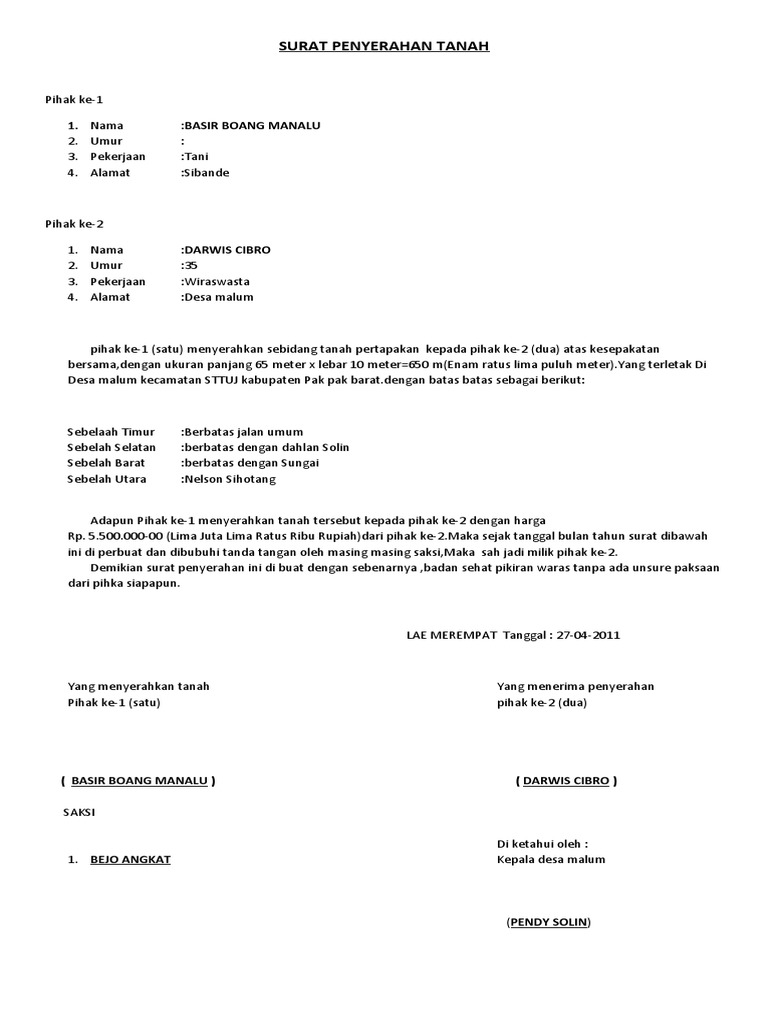 Contoh Surat Serah Hak Milik Tanah Backup Gambar