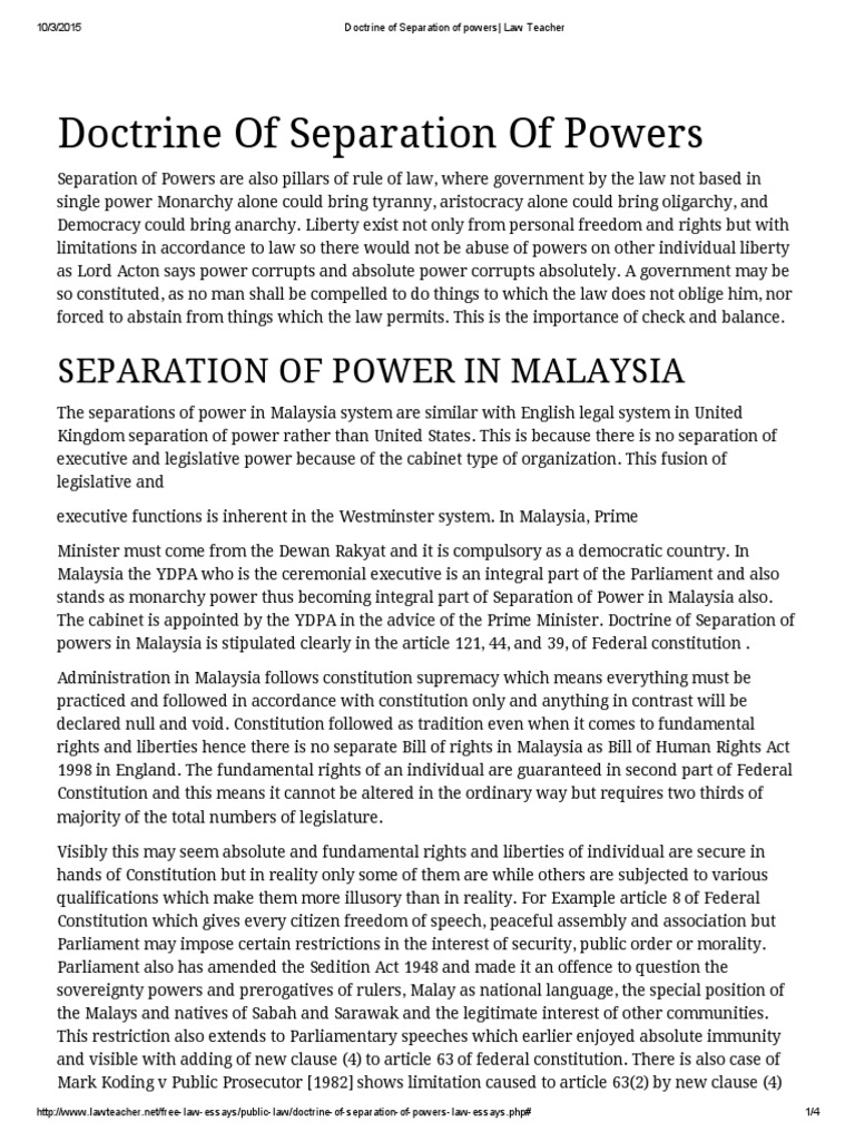 Doc Doctrine Of Separation Of Powers Benja Guru Academia Edu