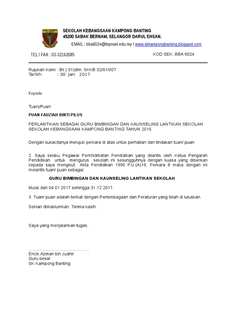 Surat Lantikan Guru Bdk