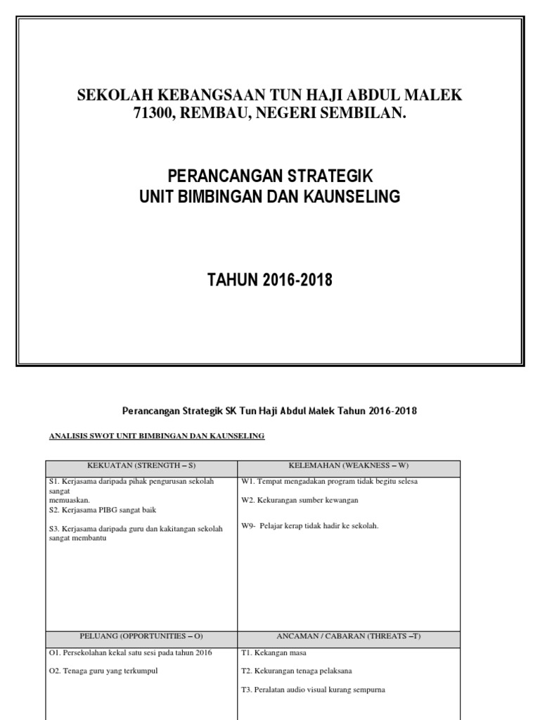 Pelan Strategik Bimbimgan Kaunseling