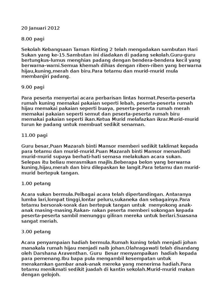 Karangan Catatan Hari Sukan
