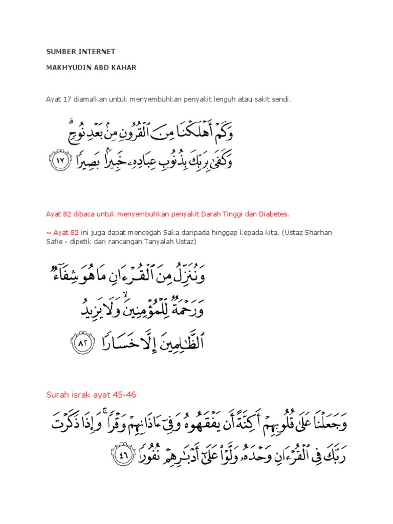 Ayat Syifa Dan Khasiat Ayat Ayat Al Quran Catatan Fazilat Amal