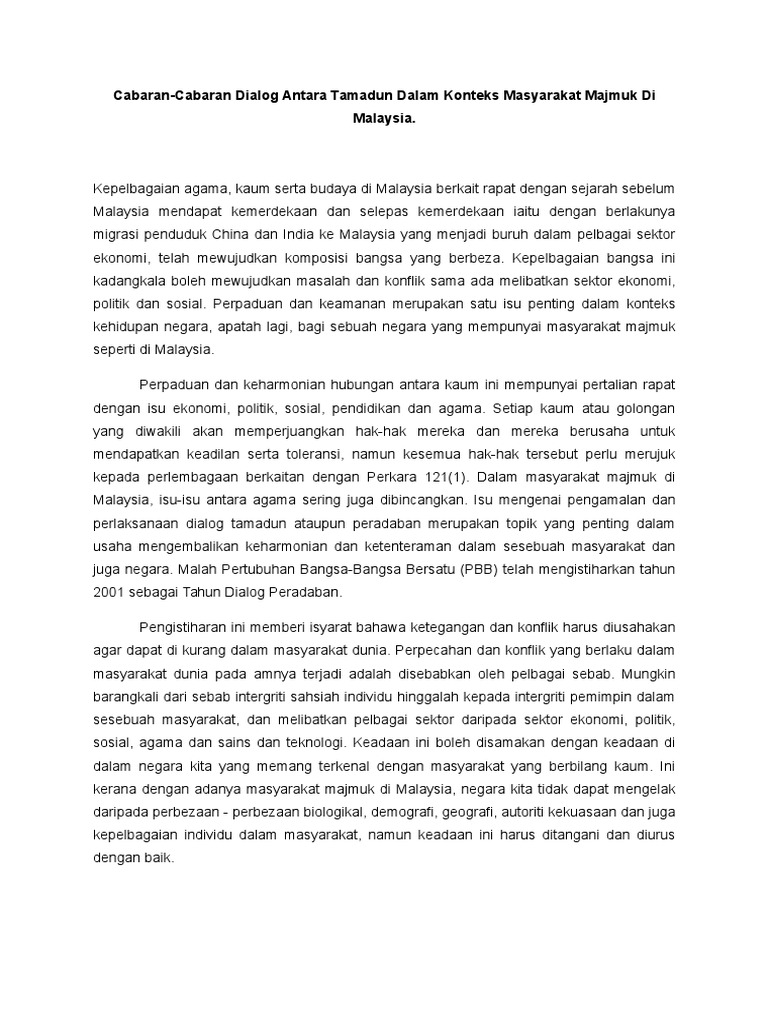 Cabaran Cabaran Dialog Antara Tamadun Dalam Konteks Masyarakat Majmuk Di Malaysia