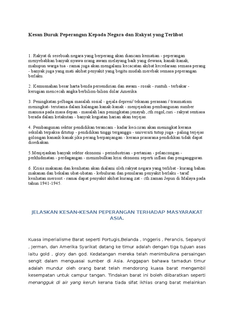 Kesan Buruk Peperangan Kepada Negara Dan Rakyat Yang Terlibat