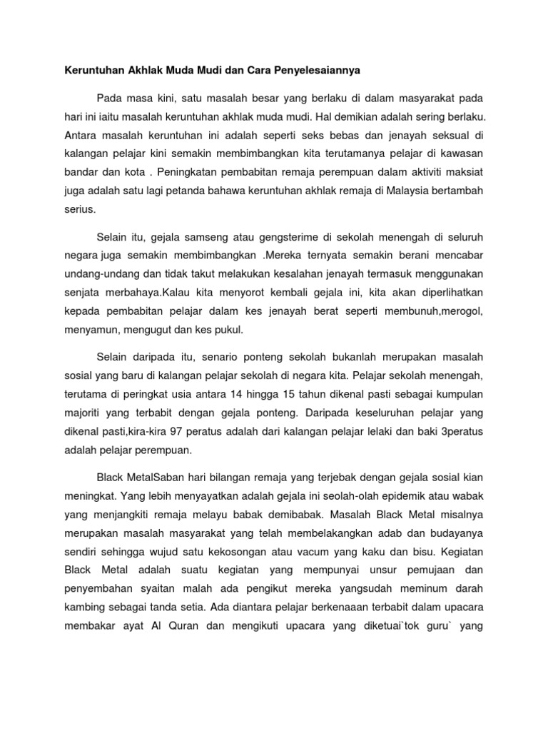 Doc Isu Moral Dan Keruntuhan Akhlak Remaja Mohd Noor Fazlan Azizan Academia Edu
