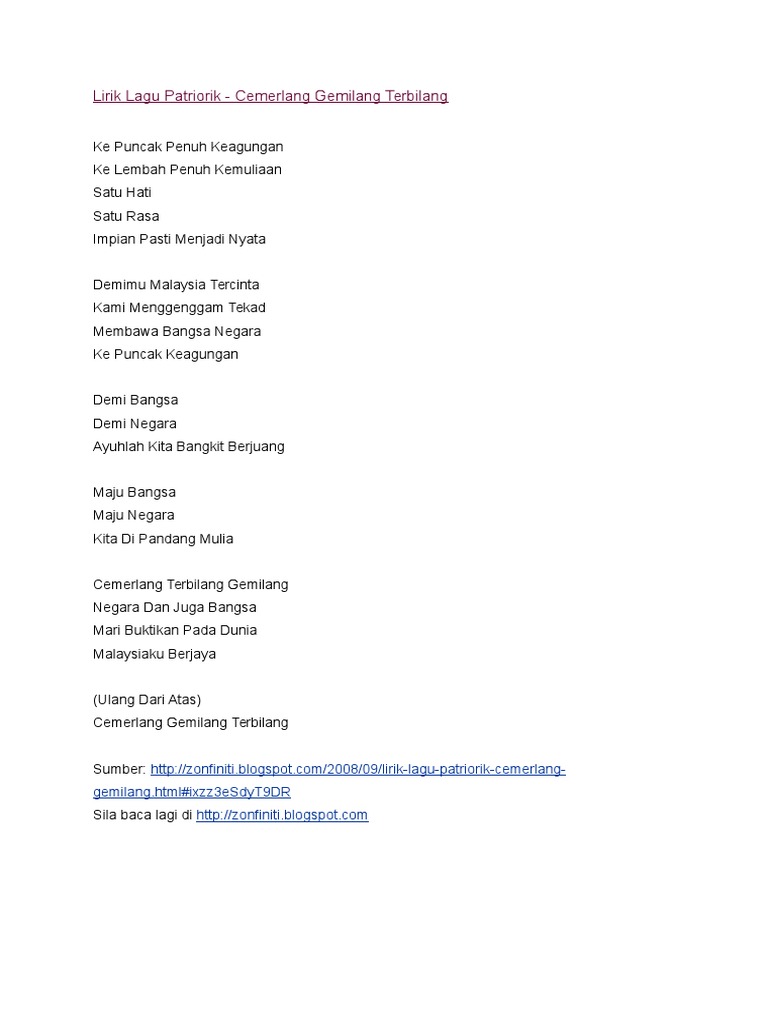 Lagu Lirik Cemerlang Gemilang Terbilang