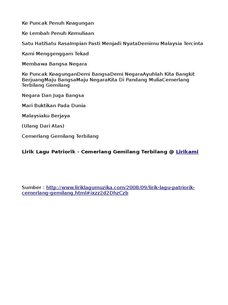 Gemersik Chorus Cemerlang Gemilang Terbilang Lyrics Lyrics My