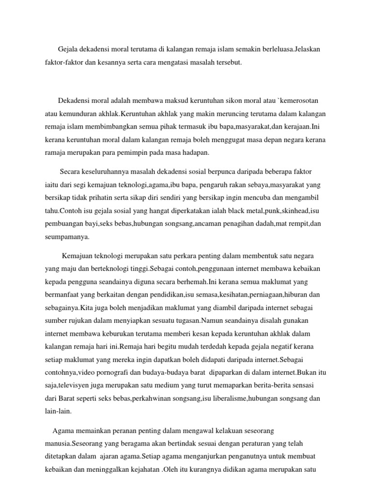 Doc Isu Moral Dan Keruntuhan Akhlak Remaja Mohd Noor Fazlan Azizan Academia Edu