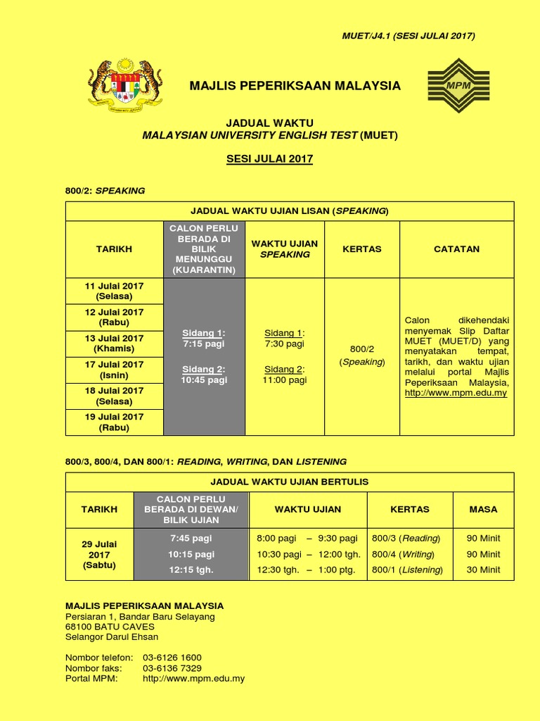 Jadual Waktu Muet Julai 2017 Portal Pdf