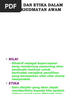 Nilai Dan Etika Dalam Perkhidmatan Awam By Sera Mika