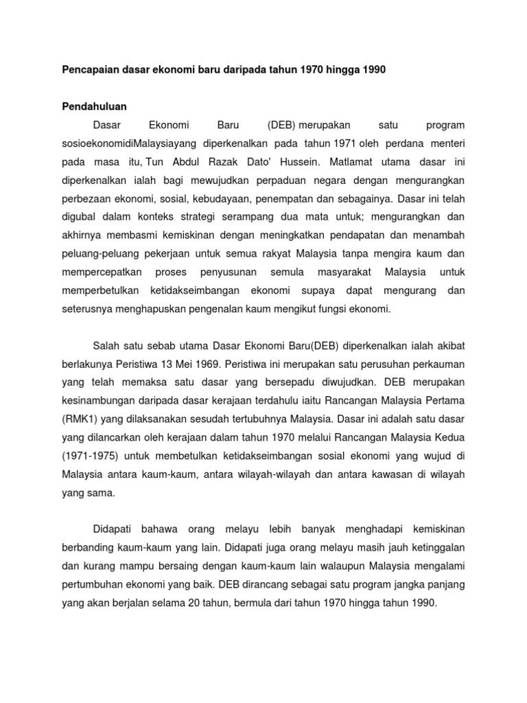 Pencapaian Dasar Ekonomi Baru Daripada Tahun 1970 Hingga 1991 Getfgfdjjd