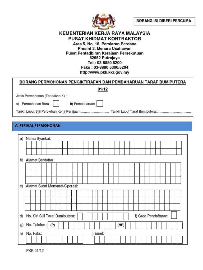 Borang Pembaharuan Lesen Pkk Taraf Bumiputera