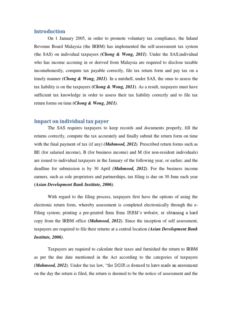 Self Assessment System In Malaysia Docx Tax Return United States Taxes
