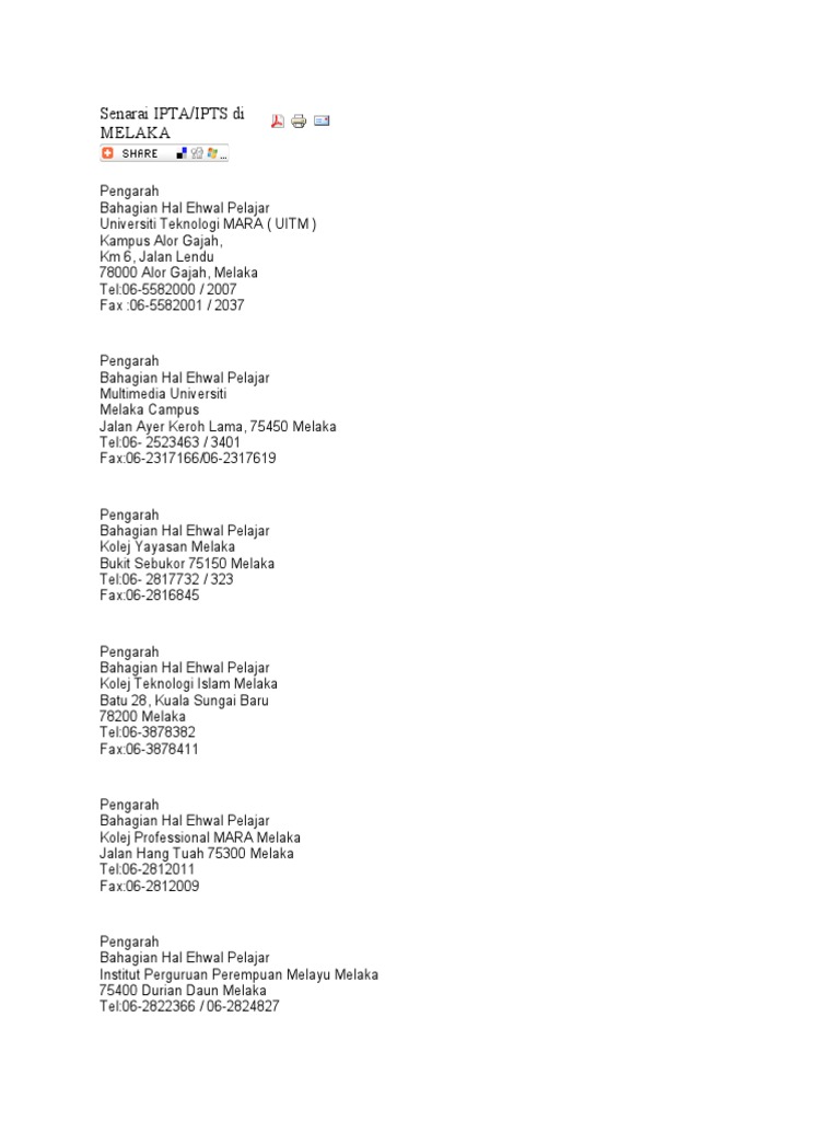 Senarai Ipta Dan Ipts Di Malaysia 2019