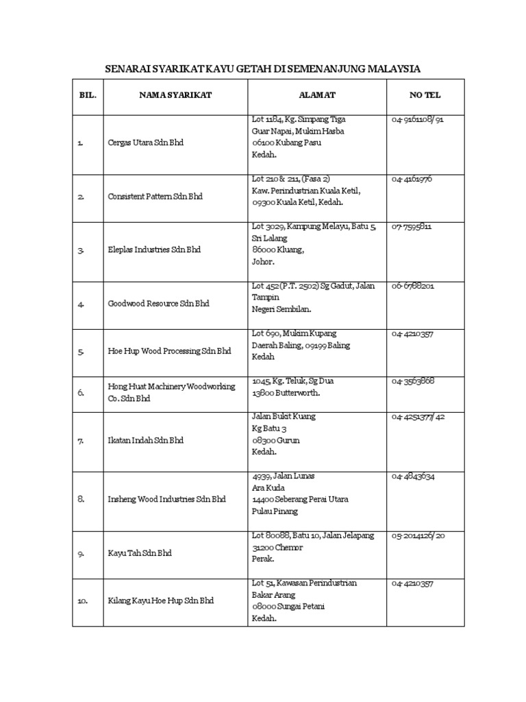 Senarai Syarikat Kayu Getah Di Semenanjung Malaysia 50