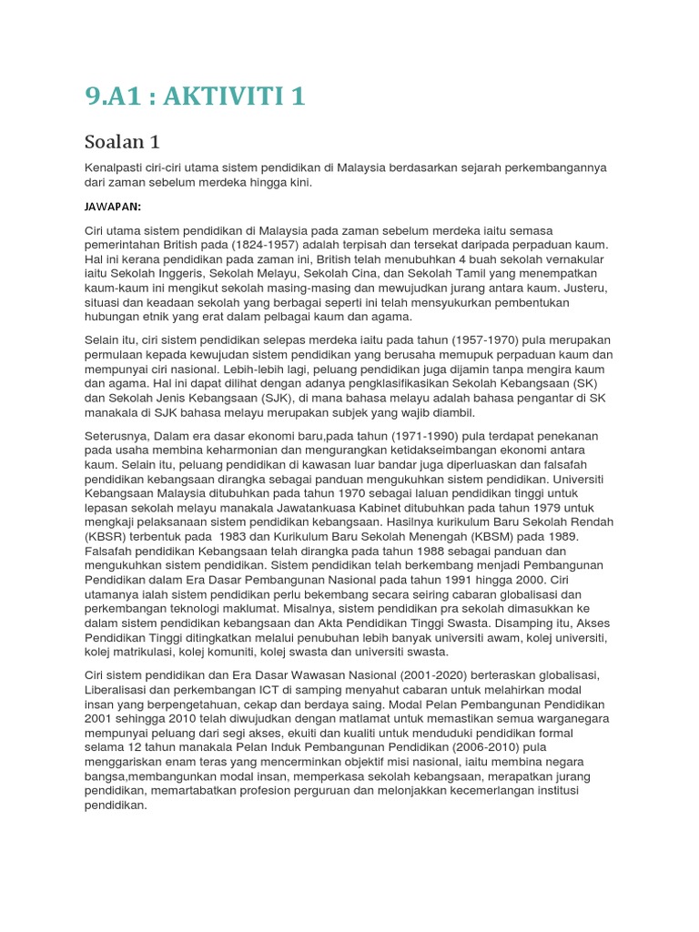 Nota Bab 1 Edu 3101 Sistem Pendidikan Di Malaysia