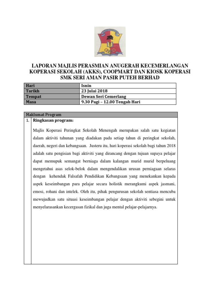 Laporan Majlis Perasmian Anugerah Kecemerlangan Koperasi Sekolah