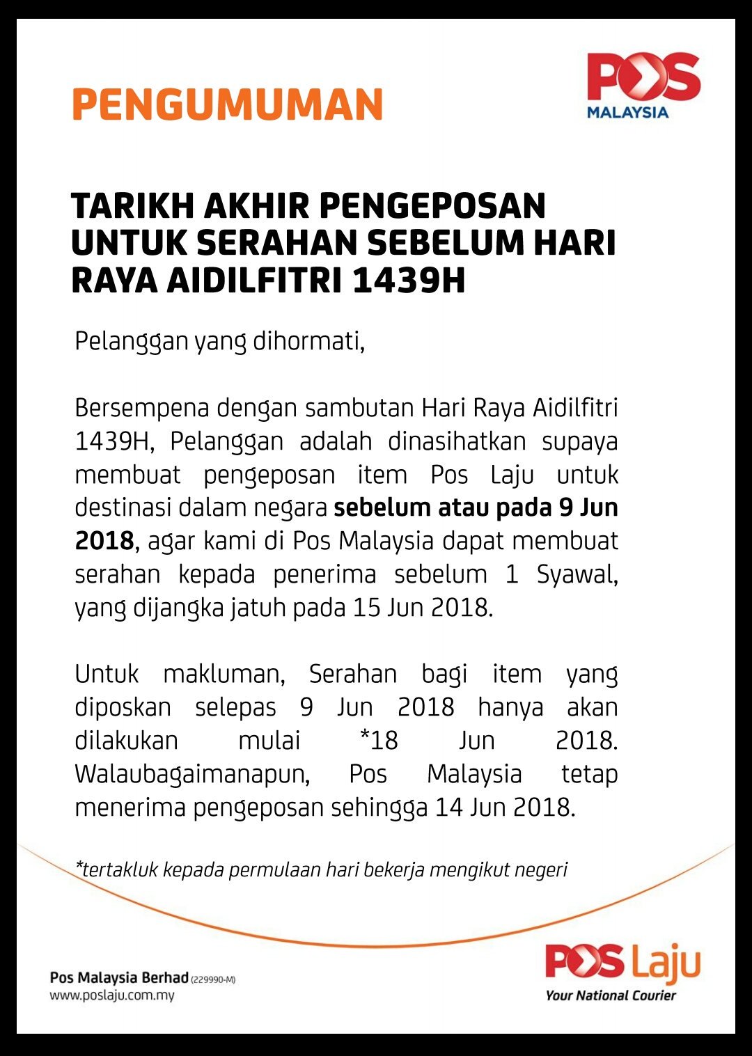 Notice From Pos Laju Malaysia