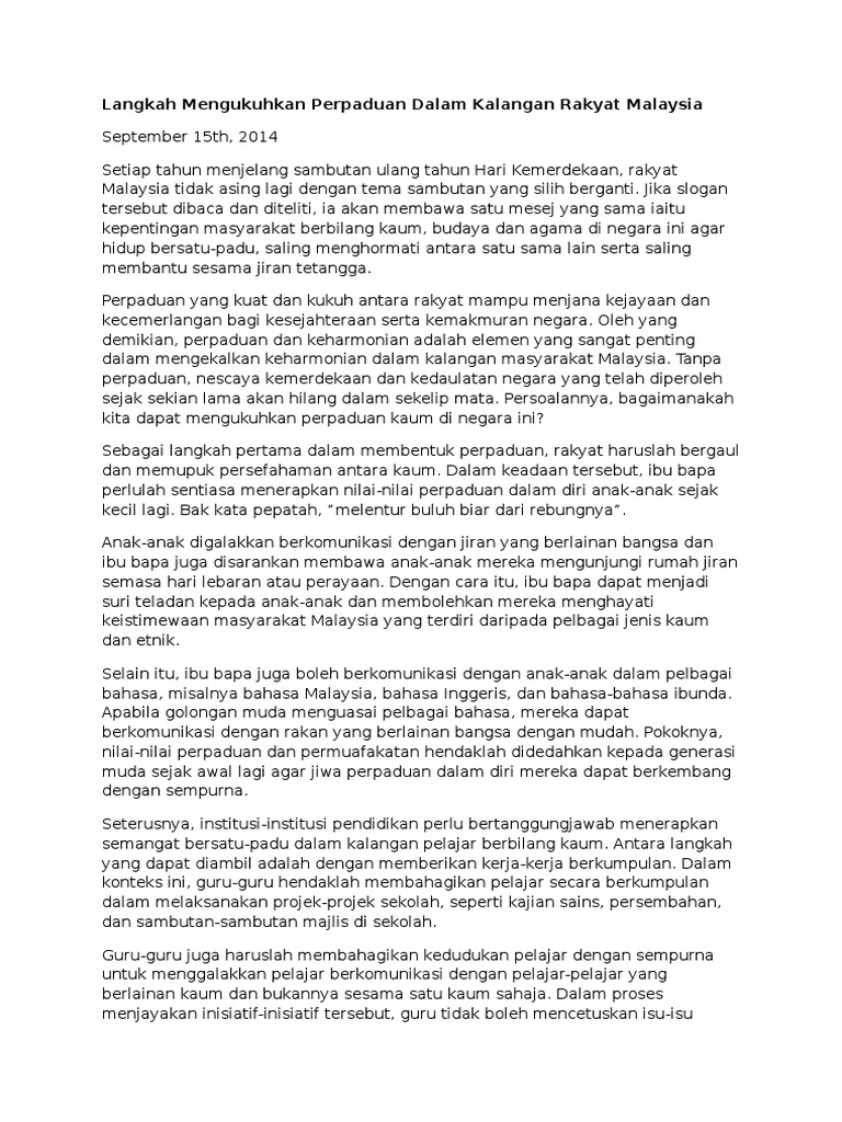 Luar Biasa Karangan Perpaduan Kaum Di Malaysia Erlie Decor